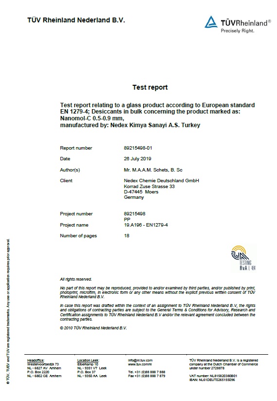 NEDEX nem alıcıları 'NANOMOL-C' ve 'ZEOLAN-K', yeni EN normlarını ifade eden EN 1279:2018 spesifikasyonlarına uygun şekilde yapılan testleri başarıyla geçti.