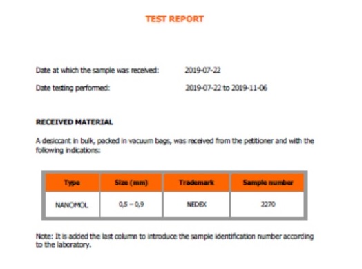 NEDEX, üretmekte olduğu NANOMOL markalı nem alıcıyı İspanya'da 'APPLUS+' adıyla sertifikalandırdı.